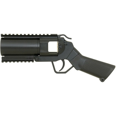 Celokovový granátomet pro montáž na airsoftovou zbraň. Je schopen vystřelovat klasické 40mm plynové airsoftové granáty, které se vkládají po odsunutí hlavně dopředu. Granátomet se upevňuje pod předpažbí zbraně. Buď se nasadí pomocí zadního adapteru na matici předpažbí...