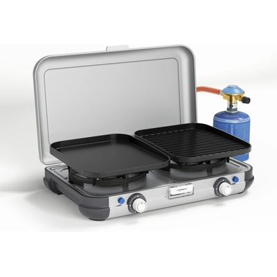 - Typ: Přenosný plynový vařič/gril 3-v-1 – vaření, grilování i plancha v jednom zařízení. - Počet hořáků: 2 (samostatně ovladatelné) - Výkon: 2 × 2 000 W (celkem ~4...