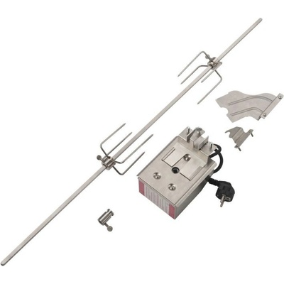 Grilovací jehla na kuře 75cm + motor 230V 4W grilovací SN Mefisto - skládaný Set Praktický set nerezové grilovací jehly 75 cm a motoru 4W s unášečem 6x6mm - reálné zatížení max....