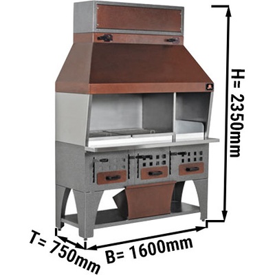 Poznámky - Pouze pro venkovní použití. Pro vnitřní použití kontaktujte předem svého kominíka. Provedení - Přístěnný gril na dřevěné uhlí - Monobloková digestoř s dvojitým...