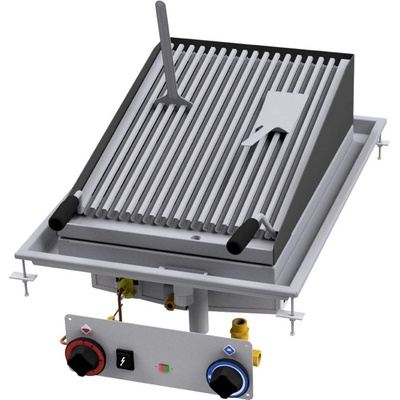 Gril plynový vyrobený z nerezové oceli. Rozměr roštu v cm: 38x66. Dveře nejsou součástí – možno dokoupit. Vhodný do kuchyně nad 500 jídel – nemocnice, školy, věznice, ústavy...