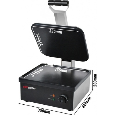 Provedení - Kontaktní gril - Grilovací desky s drážkami nahoře a dole - Panini rozměr - Teplota: 50 °C ~ 300 °C - Vhodné pro profesionální použití - Tepelně odolná...
