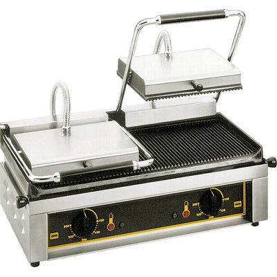 Kontaktní gril dvojitý od firmy Roller Grill s indexem 777217 s rozměry 22x60x38,5 cm s litinovými hořáky, regulací teploty do 300°C, zásobníkem na odpad vzniklý během vaření,...