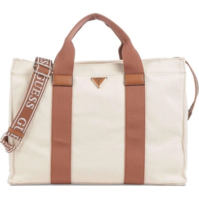 Dámská béžová kabelka od Guess. Kabelka má jednu komoru, jednu kapsičku na zip a přihrádky na karty. Materiál: ekokůže - 100% polyuretan Rozměry: 31 x 23 x 6 cm maximální...