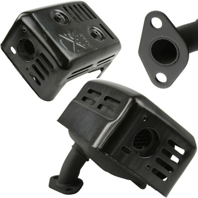 Tlumič motoru 6,5 HP Výfuk motoru GX160, GX200 (6,5 HP / 7 HP) Parametry: délka: 140 mm šířka: 108 mm rozteč otvorů: 44 mm průměr otvorů: 9 mm .