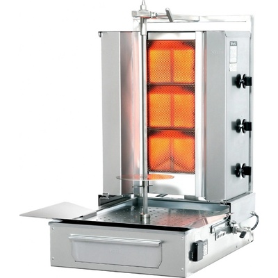 Plynový gril na kebab/gyros- Jednotka z nerezové oceli- 3-topná pole- Je vybaven inovativním řešením založeným na použití spodního pohonu, který kombinuje možnost pohonu jehly...