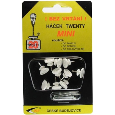 Twenty háček ideální pro pověšení obrázků na stěny. materiál: plast barva: bílá Háčky TWENTY jsou vyrobeny z vysoce kvalitní plastické hmoty polyamid (nylon), která vyniká...