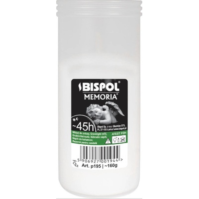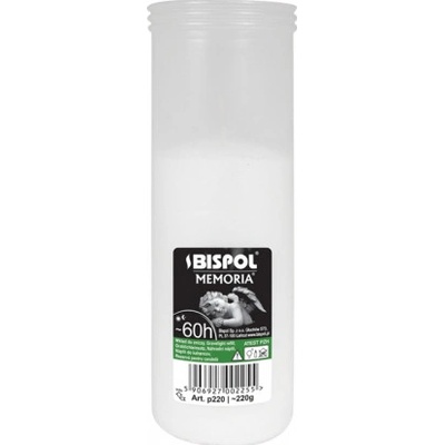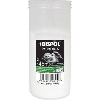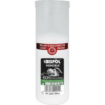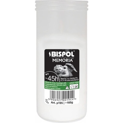 Náhradní náplň do hřbitovních lamp z lisovaného vosku v plastové bílém kalíšku o průměru 6 cm, výšce 14 cm a s hmotností 160g. Svíčka hoří 45h.