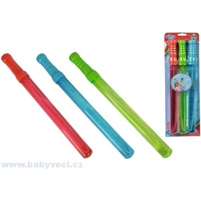 Bublifuk v hůlce na velké bubliny. Délka 34 cm. Náplň 115 ml. Sada obsahuje 3 různě barevné hůlky.