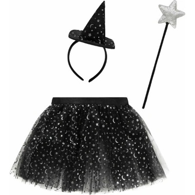 Dětská sada Čarodějnice s hvězdami je ideální volbou pro malé kouzelnice na Halloween, karneval nebo maškarní oslavu. Součástí balení je černá tylová sukně zdobená stříbrnými...