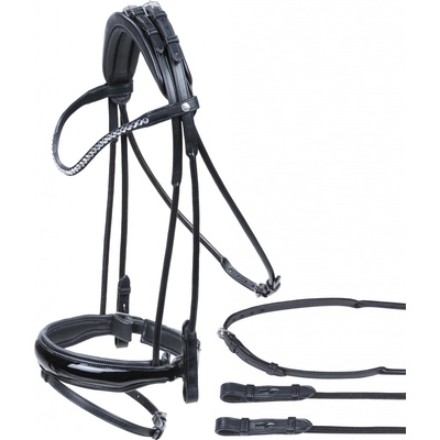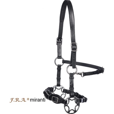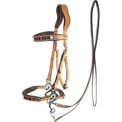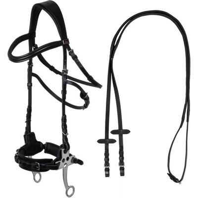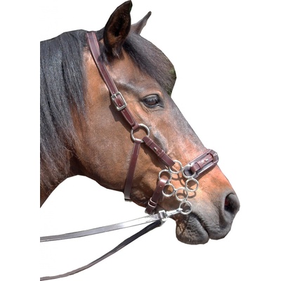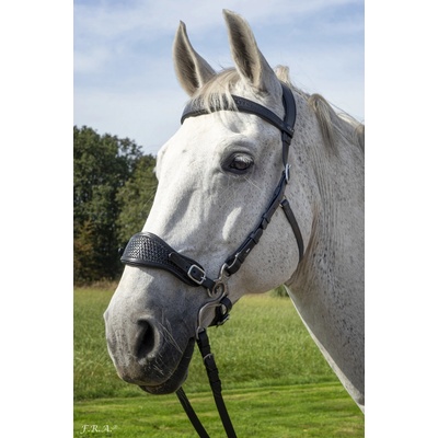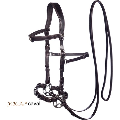 Kvalitní komplet bezudidlové kožené uzdečky a hackamore od značky F.R.A. Jedná se o kombinaci uzdečky a obnosku. Disponuje 3 pohyblivými kroužky na nánosníku, lze ji tedy využít...