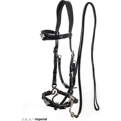 Vysoce kvalitní uzdečka Imperial F.R.A. vyrobená z italské kůže nejvyšší kvality. Vybavena barokním kováním a gravírovaným hackamore. Uzdečka má anatomický nánosník a snížený...