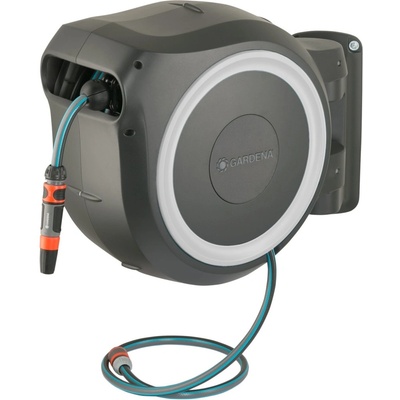 Buben na hadici pro montáž na zeď nebo na podlahu Pomocí GARDENA nástěnného bubnu na hadici Basic (25 m) prodávaného v sadě můžete snadno zavlažovat vaše rostliny, květiny a...