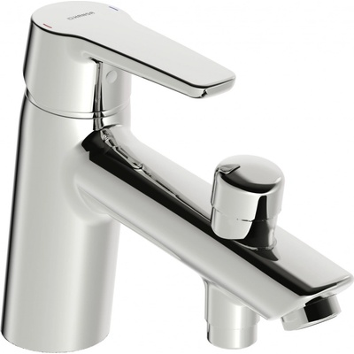 Stojánková vanová baterie Polo, s držákem sprchy barva chrom materiál mosaz výška 156 mm délka výtoku 164 mm pákové ovládání, páka se symboly teplé a studené vody přepínač s...