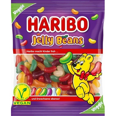 Haribo Jelly Beans dražé fazolky s želé náplníSloženíCukr, Glukózový sirup, Škrob, Kyselina: kyselina citronová, Ovocné a rostlinné koncentráty: jablko, citron, ibišek, mrkev, světlice barvířská, řasa spirulina, Aroma, Leštící látka: karnaubský vosk, Zahušťovadlo:...