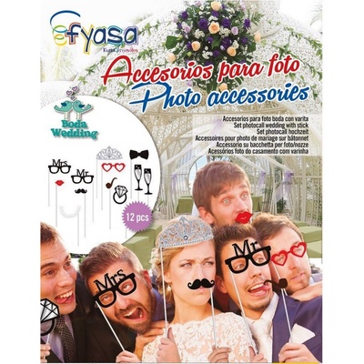 Krásná sada na svatbu, párty, karneval a všude tam kde si chcete udělat fotokoutek. Sada obsahuje 12ks různých věcí na špejli.