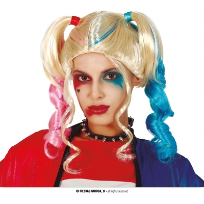 Dámská karnevalová paruka fiktivní postavy z vydavatelství DC Comics Harley Quinn. Paruku Harley Quinn můžete zakoupit u nás na internetovém e-shopu nebo v kamenné prodejně na Tylově nábřeží, Hradec Králové.