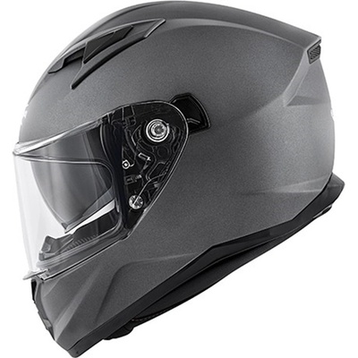 Integrální motocyklová helma z termoplastického materiálu. Helma se dodává s čirým plexi. Vlastnosti: - Barva černá matná - Čiré hledí s přípravou pro umístění antifog folie...