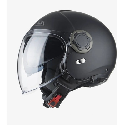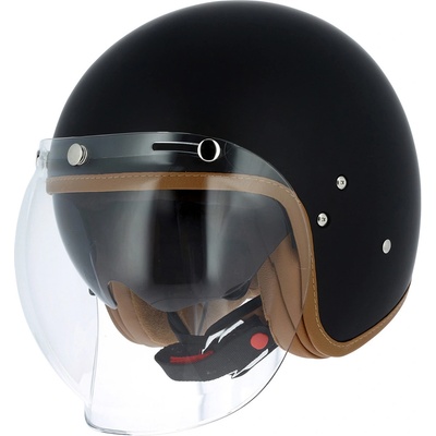 Integrální motocyklová helma z termoplastického materiálu. Helma se dodává s čirým plexi. Vlastnosti: - Barva černá matná - Čiré hledí s přípravou pro umístění antifog folie...
