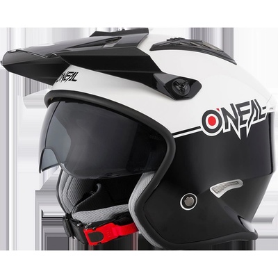 Motocyklová přilba pro trial, skútr nebo na kafíčko. Lehká konstrukce z ABS. Integrovaná sluneční clona. Matná povrchová úprava. Odolná vícebarevná grafika. Zapínání na...