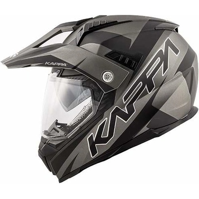 Universální endurová přilba KAPPA. barva šedo-černá mat, materiál termoplast, vnitřní výsuvná sluneční clona, plně vyjímatelný a pratelný antibakteriální interiér,...