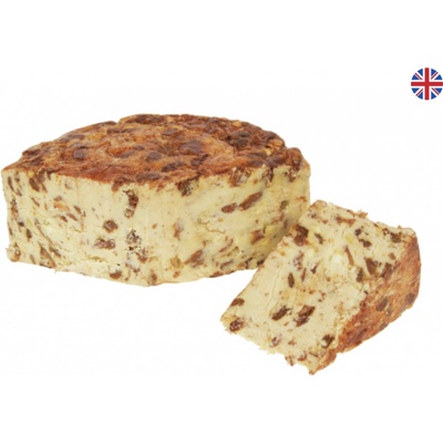 Složení: 75,3 % sýr Lancashire (pasterované kravské mléko, sůl, zákysové kultury, mikrobiální syřidlo), 18,8 % sultánky, 5,6 % kousky sušeného jablka (jablko, konzervant (E220...