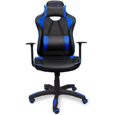 Herní křeslo se stabilní konstrukcí, ergonomicky tvarovanou skořepinou, polstrováním z kvalitní PU kůže, houpací mechanikou, krční i bederní opěrku a pohodlnými područkami.