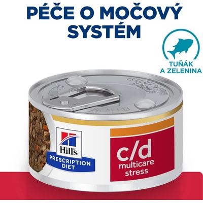 Hill's Fel. PD C/D UrinaryStress Tna&Veg stew Konz. 82g Kompletní vlhké krmivo s masem z tuňáka a zeleninou pro dospělé kočky, které vyžadují nutriční podporu v období...