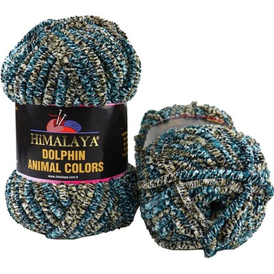 příze Dolphin Animal Colors 83112. Barva: béžová, světlá hnědá, tmavý tyrkys, černá. Složení: 100% polyester. Návin: 90 m. Hmotnost: 100 g. Háček / Jehlice: 6 / 8. Příze...