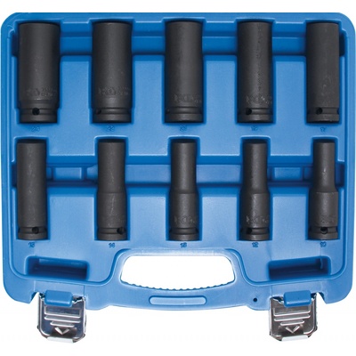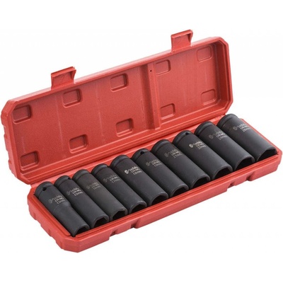 hlavice nástrčné rázové 1/2", sada 10ks, 9-27mm, CrMoV Černý fosfátovaný povrch, logo a číslo velikosti laserováno, HRC 46-50, - hlavice 9-10mm max. utahovací moment 147Nm -...