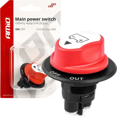 Spínač autobaterie ON-OFF-OUT AM03025 Uplatnění v elektroinstalaci osobních automobilů, nákladních automobilů, zemědělských a stavebních strojů, karavanů, motorových člunů atd.,...