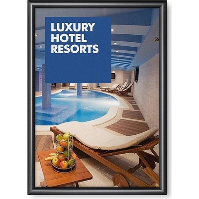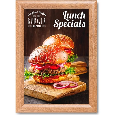 Zaklapávací rám formátu A0 (841x1189 mm) z 25 mm profilu s ostrým rohem s povrchovou úpravou imitaci dřeva. Rám je standardně vybaven plastovou zadní stěnou a krycí...