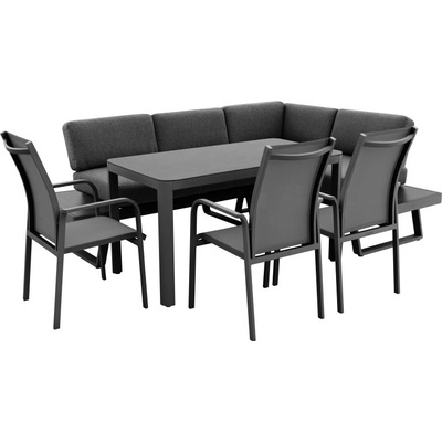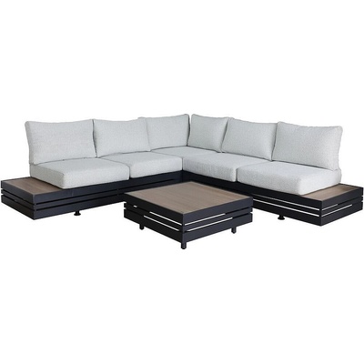 Luxusní hliníková souprava v antracitovém provedení, doplněna o stolovou desku z hliníku a pryskyřice v dezénu dřeva. Moderní souprava, která skvěle zapadne do každého...