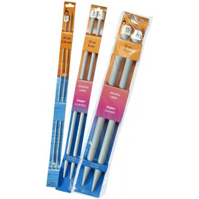 Pony pletací jehlice hliníková, 3,5 mm Hliníkové pletací jehlice Pony o délce 35 cm jsou kvalitním nástrojem pro pohodlné a plynulé pletení. Jsou vyrobeny z lehkého, ale pevného...