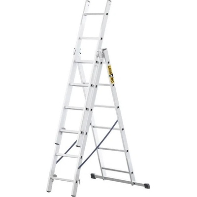 Hliníkový trojdílný univerzální žebřík od výrobce Elkop. Žebřík má 5 variant použití. - Počet příček:3x8 - Délka složeného žebříku:2,17 m - Délka vysunutého žebříku:4,52 m - Hmotnost:11,8 kg - Nosnost:150 kg - Profil hliníku: 60x20x1,3 mm Cena za dopravu bude...