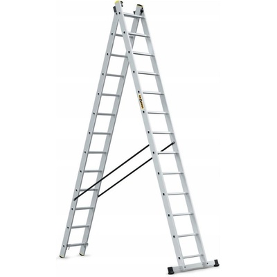 Žebřík ELKOP Trojdílný hliníkový PROFI VHR 3x17 Hliníkový trojdílný univerzální žebřík od tradičního slovenského výrobce. Žebřík má 5 variant použití. Širší profil hliníku. - Počet příček: 3x17 - Délka složeného žebříku: 4,51 m - Délka vysunutého žebříku: 11,03...