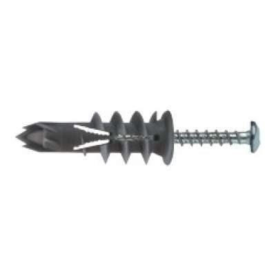 Nylonová speciální hmoždinka pro sádrokartonové desky. Stačí pouze zavrtat hmoždinku do materiálu speciálním nástrojem. Hmoždinka je opatřená vlastním "vrtákem" pro zavrtání do sádrokartonu. Hmoždinka je dodávaná s vrutem 4 x 35 mm.