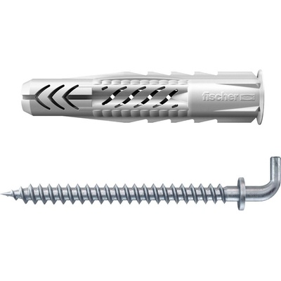 Fischer UX 8×50 WH je univerzální nylonová hmoždinka vybavená límečkem a pravoúhlým hákem, ideální pro bezpečné zavěšení lehkých předmětů, např. svítidel, ručníků, květin nebo...