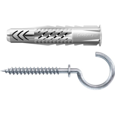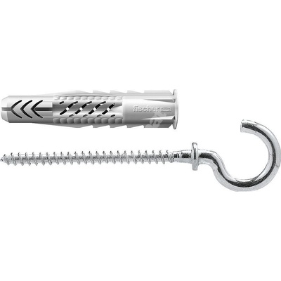 Fischer UX 8×50 RH je univerzální nylonová hmoždinka s límečkem, osazená přidaným kulatým hákem, ideální pro zavěšení lehkých předmětů, např. osvětlení, květinové háčky či...
