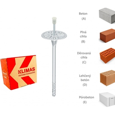 KLIMAS Wkret-met LFMG-10 Talířová hmoždinka s kovovým trnem a prodlouženou expanzní zónou Ø10 mm je plastová univerzální fasádní, talířová hmoždinka natloukací o průměru 10 mm s...