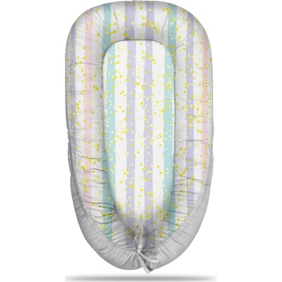 Mušelínové hnízdo pro miminko. Rozměr: 50×80 cm Lehací plocha: 28×60 cm Materiál:Potah: 100% bavlna, mušelínVýplň: 100% silikonizované polyesterové kuličky Výrobek je...