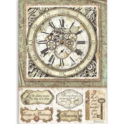 Luxusní rýžový papír s motivem Lady Vagabond hodinový strojek a cedulky, formát A4. Rýžové papíry od italské firmy Stamperia vynikají nádhernými motivy a úžasnými barvami. Jsou...