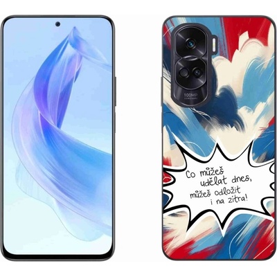 Pouzdro, na kterém je zajímavý text má název - vtipný text 9 bílé pozadí a je na Honor Magic 6 Lite 5G poskytuje všechny výhody gelových krytů, a to v zajímavém designu. -...