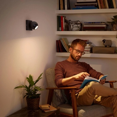 DODÁVÁNO BEZ DÁLKOVÉHO OVLADAČE - rozšiřující kit! Bodové svítidlo Philips Buckram v černém provedení z kolekce inteligentního osvětlení Philips Hue vkusně osvítí Váš obývací...