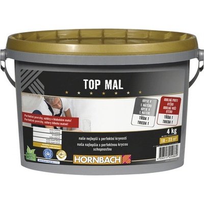 Top Mal HORNBACH bez konzervačních látek je hluboce matná, vodou ředitelná disperzní barva nejvyšší kvality na nátěry stěn a stropů v interiéru, která kryje v prvním nátěru....