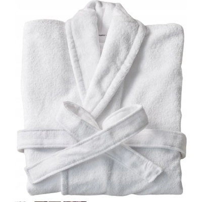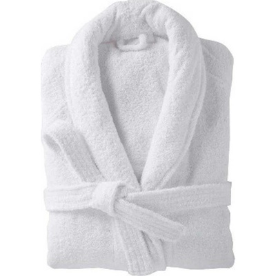 Savý hotelový froté župan s límcem v bílé barvě s páskem na zavázání ve velikosti L.