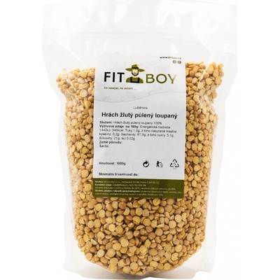 FITBOY Hrách žlutý půlený loupaný 1000g Hrách žlutý půlený je tradiční surovina, která by neměla chybět v žádné kuchyni. Je bohatý na bílkoviny, vlákninu a řadu důležitých...