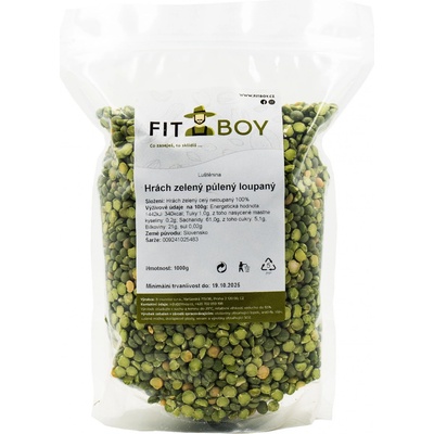 FITBOY Hrách zelený půlený loupaný 1000g Hrách zelený půlený je tradiční luštěnina s jemnou, lehce nasládlou chutí a příjemně krémovou strukturou po uvaření. Díky tomu se...