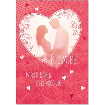 Svatební hrací přání s oblíbenou písní Michala Davida PRÁVĚ ZAČÍNÁME.Text na titulní straně přání: K SVATBĚ - MÁŠ-LI LÁSKU, MÁŠ VŠECHNOText uvnitř přání: DNEŠNÍM DNEM SKONČILO...