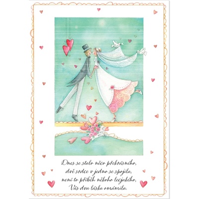 Nádherné přání k svatbě s písní Když muž se ženou snídá, kterou zpívá Karel Gott se sborem Karla Gotta.Text na úvodní straně přání: Najlepší věc na světě je, když můžeš obejmout...